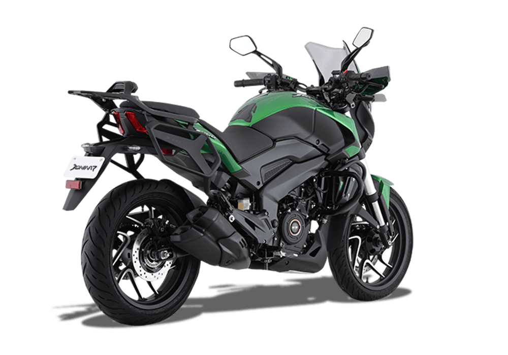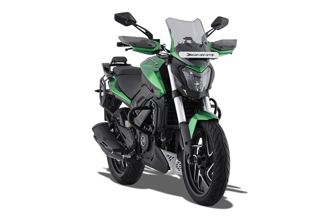 The Dominar 400 is available in Aurora Green and Charcoal Black, both reinforcing its premium positioning.